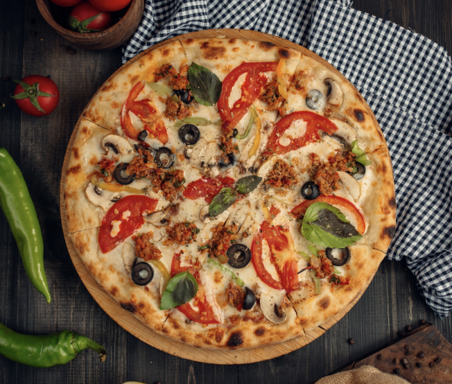 "Fırından çıkan sıcak pizza, taze malzemelerle bezenmiş. İster klasik ister özgün tatlarıyla, her lokmada farklı bir keyif!"